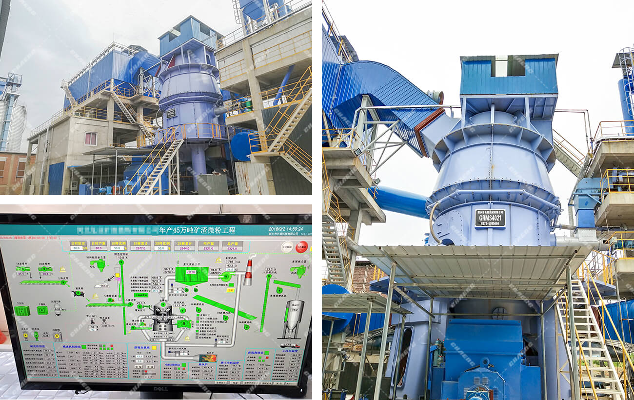 新鄉(xiāng)長(zhǎng)城機(jī)械GRMS礦渣立磨機(jī)集粉磨、烘干、選粉、輸送、收集為一體,烘干能力大、電耗低,可滿足年產(chǎn)15~150萬噸礦渣微粉生產(chǎn)線項(xiàng)目,成品礦粉比表面積可達(dá)420~450 m2/kg。